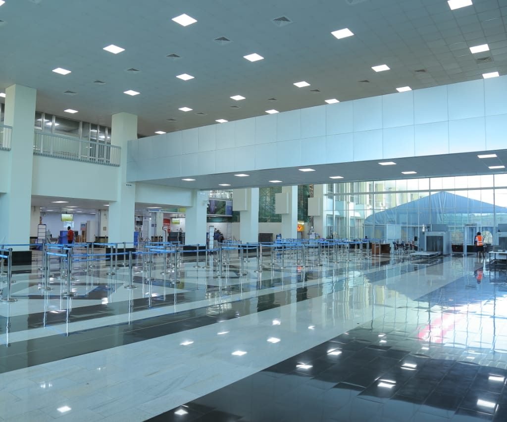 Part of the interior of the new passenger terminal building at Entebbe Airport